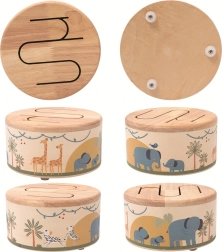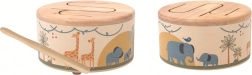 Ontdek de vreugde van de eerste ritmes met de houten kindertrommel met safarimotieven. Deze veilige en duurzame trommel van natuurlijk hout met schattige illustraties van olifanten, giraffen en zebra’s wordt geleverd met een stokje en ligt perfect in kleine handjes. Stimuleert de fijne motoriek, het ritmegevoel en het muzikaal bewustzijn – een ideale keuze voor de eerste muzikale ontdekkingen.