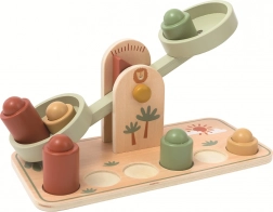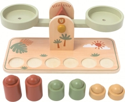 Het speelgoed is geïnspireerd door de Montessori-pedagogiek: het stimuleert zelfstandig ontdekken, de ontwikkeling van fijne motoriek, oog-handcoördinatie en logisch redeneren. Dankzij de stevige houten afwerking, gladde randen en rustgevende pastelkleuren is de weegschaal een prachtige aanvulling voor de kinderkamer en de kleuterklas.