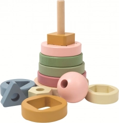 Ontdek de wereld van kleuren en vormen met dit houten speelgoed voor de allerkleinsten! Deze slimme puzzel combineert het plaatsen en stapelen van ringen met verschillende uitsparingen die in de juiste volgorde moeten worden geordend. Ontwikkelt de fijne motoriek, oog-handcoördinatie en herkenning van vormen en maten. De natuurlijke houten afwerking in zachte aardetinten past perfect in de kinderkamer.