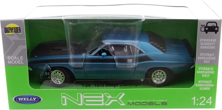 Gedetailleerd uitgevoerde metalen-kunststof modelauto van de 1970 DODGE CHALLENGER T/A in schaal 1:24 zal zowel verzamelaars als jonge liefhebbers bekoren. Voorzien van openende carrosseriedelen en een hoogwaardige gespoten autolak die de originele tinten natuurgetrouw nabootst.