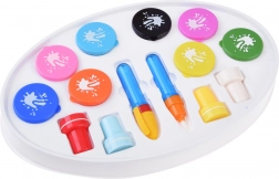 Maak originele patronen met kleurrijke stempels en opzetstukken. Kinderen maken eenvoudig decoraties, stipjes en simpele motieven.