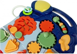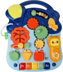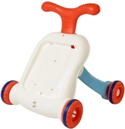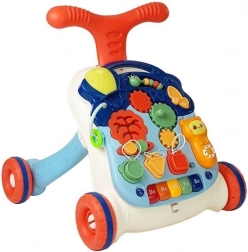 De multifunctionele 3-in-1 kinderloopwagen combineert een duwloopwagen, een afneembaar leerpaneel en een speeltafeltje. Ondersteunt de eerste stapjes, ontwikkeling van de fijne motoriek, zintuiglijke stimulatie en leren van vormen, letters en cijfers. Stabiele constructie met vergrendeling van de achterwielen en waterreservoir voor extra gewicht voor meer zekerheid. Het paneel biedt een Do-Re-Mi mini-piano, draaibare tandwielen, knoppen en schuifjes, lichteffecten en een afneembare telefoon met geluiden.