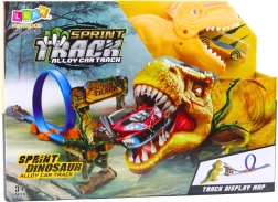 De racebaan met katapult en dinosaurusmotief is een geweldige keuze voor kinderen die van snelheid en avontuur houden. De mechanische katapult geeft de auto een flinke boost, waardoor de rit dynamisch en spannend is. Het realistische diermotief prikkelt de verbeelding en nodigt uit tot het bedenken van eigen verhalen en racescenario’s.