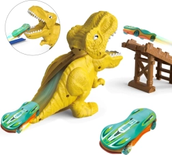 Een leuke racebaan met dinosaurus en krachtige katapult bezorgt kinderen uren vol actie en fantasie. Met de speciale lanceerhelling versnelt de auto, zoeft over de baan en rijdt recht de bek van de dinosaurus in. Het kleurrijke ontwerp, zonder batterijen en met eenvoudige bediening, maakt deze set tot het ideale speelgoed voor kleine racers.