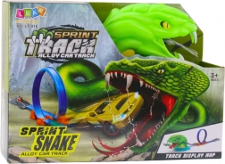 De racebaan met katapult en slangenmotief bezorgt kinderen adrenalinekicks zonder batterijen. Krachtige startkatapult lanceert het autootje met hoge snelheid, de indrukwekkende 360°-looping geeft de rit dynamiek en de grootste uitdaging is de gevaarlijke slangenbek waar het autootje doorheen moet. Ideaal cadeau voor jonge fans van snelheid en actievolle races.