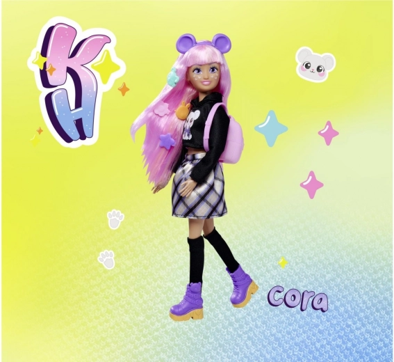 De Kawaii Hi Cora-pop brengt een wereld vol kleur, mode en fantasie. Dankzij het extra lange haar, het schattige huisdiertje Kurumi en de uitgebreide set accessoires genieten kinderen van uren creatief plezier – van kammen en versieren tot het creëren van hun eigen modeverhalen.