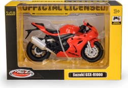 De rode SUZUKI GSX‑R1000 op schaal 1:18 is een natuurgetrouwe replica van een sportmotor met verfijnde details. Metalen en kunststof onderdelen, realistische kappen en bedrukking zorgen voor een aantrekkelijk uiterlijk, zowel voor in de vitrine als om mee te spelen.