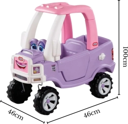 De iconische roze‑paarse Cozy Coupe Truck combineert een stabiele constructie met slimme details voor dagelijks speelplezier. Het kind kan zich voortbewegen met de eigen voeten in de foot‑to‑floor modus, of je kunt comfortabel sturen en duwen met de praktische beugel op het dak. De verwijderbare vloer verhoogt de veiligheid voor jongere kinderen en geeft oudere kids meer zelfstandigheid.