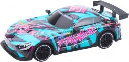 Het model is licht, eenvoudig te besturen en in een mum van tijd klaar voor gebruik – plaats simpelweg batterijen in de auto en de afstandsbediening. De sportieve vorm en contrasterende roze accenten geven de auto een opvallende look die meteen de aandacht trekt.