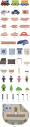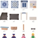 Thematische accessoires zoals een politieauto, stationsgebouw, lichten, borden en figuurtjes verrijken het spel met verhalen en leren de basis van verkeersonderwijs.