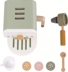 Kwalitatieve materialen (natuurhout, MDF en multiplex) en prettige pastelkleuren zorgen ervoor dat de koffiemachine prachtig past in de kinderkamer. De set bevat alles wat nodig is om “koffie te zetten” en inspireert tot rollenspelactiviteiten die communicatie en fantasie stimuleren.