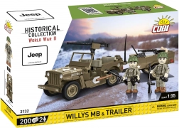 De legendarische terreinwagen uit de Tweede Wereldoorlog komt tot leven in deze COBI bouwset: Jeep WILLYS MB met aanhanger. Het model valt op door authentieke vormen, militaire kleurstelling en een set accessoires, waaronder een draaibaar machinegeweer, gereedschap en wapens voor de figuren. Dankzij hoogwaardige bouwstenen is het model stabiel en geschikt voor intensief spelen of tentoonstellen in een vitrinekast.