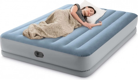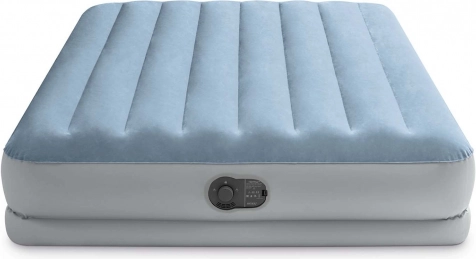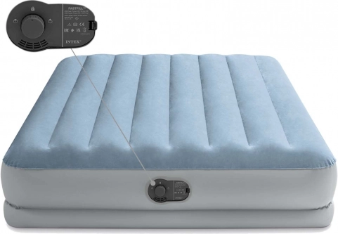 Het praktische INTEX opblaasbed is ideaal als tijdelijk logeerbed, voor op de chalet of op reis. De verhoogde constructie maakt in- en uitstappen makkelijker, terwijl het velours oppervlak prettig aanvoelt en het verschuiven van het laken tegengaat. De geïntegreerde elektrische pomp zorgt voor een gereed bed in ongeveer 3 minuten en laat het even snel weer leeglopen.