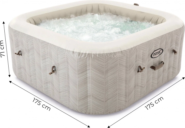 De opblaasbare spa van INTEX verandert tuin, terras of interieur in een privéspa. De ruime binnenkant voor 4 personen en het elegante beige design passen perfect in een moderne omgeving. 140 bubbeljets verlichten spierspanning en ondersteunen herstel na een drukke dag, terwijl verwarming tot 40 °C voor ultiem comfort zorgt in elk seizoen.