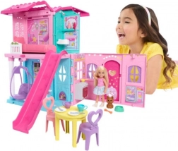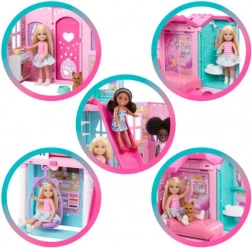 Ontdek de magische fantasiewereld met het uitklapbare huisje voor Chelsea van Barbie! Deze kleurrijke set verandert na het openen in een groot huis met meer dan vijf speelzones – van een woonkamer met een schommelstoel, via een keuken met een te openen oven, tot een slaapkamer, badkamer en een leuke glijbaan. Inclusief Chelsea-pop, haar hondje en veel accessoires voor eindeloze verhaaltjes.