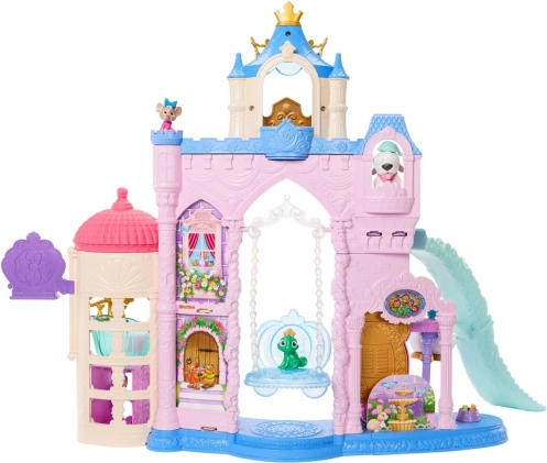 Het paleis biedt volop ruimte voor fantasierijk spel: een glijbaan voor snelle afdalingen, een schommel in Assepoester-stijl, een keuken en een stoeltje in de vorm van een kopje geïnspireerd op Belle, een wastafel en spiegel in Ariel-stijl en een relaxhoek met lampionnen in perfect formaat voor kleine diertjes. Ook is er een slaapkamer met mandje en dekentje om uit te rusten na een dag vol avonturen.