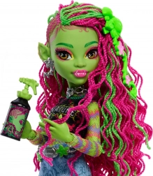 Ontdek de plantaardige ster van de wereld van MONSTER HIGH. Venus McFlytrap straalt in een kleurrijke outfit met print, denim short en plateauschoenen met lianenmotief. Dankzij de gearticuleerde ledematen kun je de pop makkelijk laten poseren en fantasierijke scènes creëren waar kinderen dol op zijn.