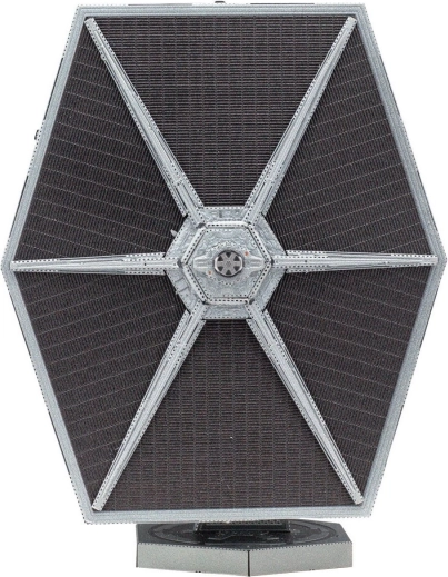 Maak je eigen metalen model van de legendarische jachtvliegtuig TIE Fighter uit het Star Wars-universum. Van platte stalen plaatjes stel je dankzij doordachte vergrendelingen en nauwkeurige lasergravure een indrukwekkend 3D-model samen dat uitblinkt op een plank of bureau.