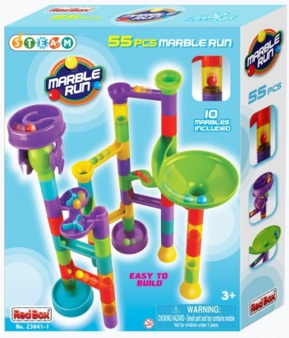Deze kunststof knikkerbaan met 55 onderdelen laat kinderen uiteenlopende routes bouwen en testen welke knikker het snelst is. Dankzij verschillende obstakels en roterende elementen is elke rit anders en vol spanning. De set stimuleert creativiteit, geduld en oog-handcoördinatie.