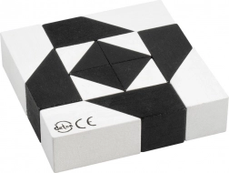 De zwart-witte tangram van Detoa biedt eindeloos veel combinaties en legvarianten. De opdracht is om de losse houten stukjes in een vorm volgens het voorbeeld te leggen – er zijn meerdere oplossingen mogelijk, waardoor het spel ook bij herhaald spelen leuk blijft. Eenvoudige regels maken het een uitstekende keuze voor zowel kinderen als volwassenen.