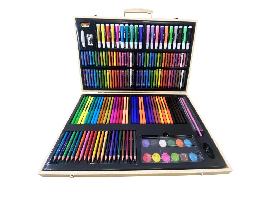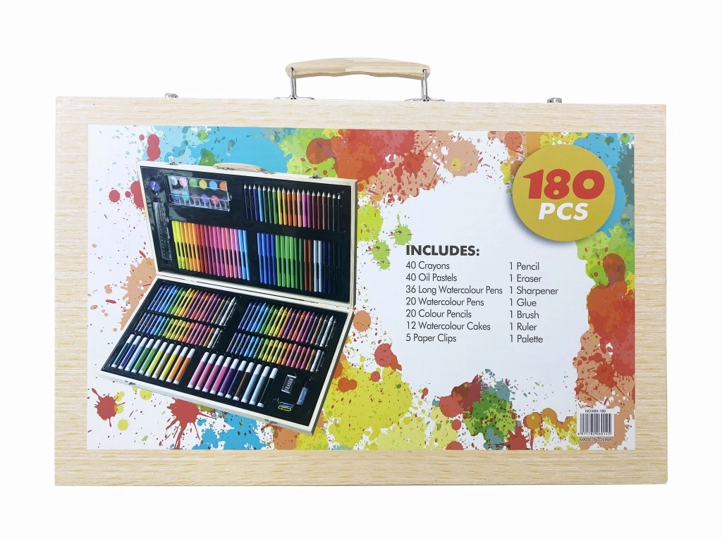 Ontdek de veelzijdige houten schilderskoffer met een rijke uitrusting voor kinderen, scholieren en volwassenen. De set biedt 180 stuks kunstbenodigdheden voor tekenen, schilderen en creatief creëren – alles overzichtelijk opgeborgen in een praktische houten koffer, ideaal voor thuis, op school en onderweg.