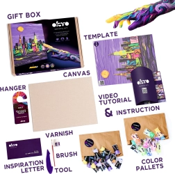 Deze OKTO kunstset begeleidt je stap voor stap door de techniek van schilderen met modelleerklei. Je creëert een opvallend reliëfschilderij met het iconische motief van de skyline van NEW YORK, dat je interieur zal verfraaien of als persoonlijk cadeau zal verrassen.