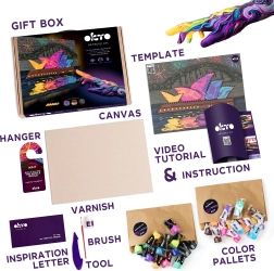 - Complete set – canvas, handleiding, tool, pasta, lak en penseel