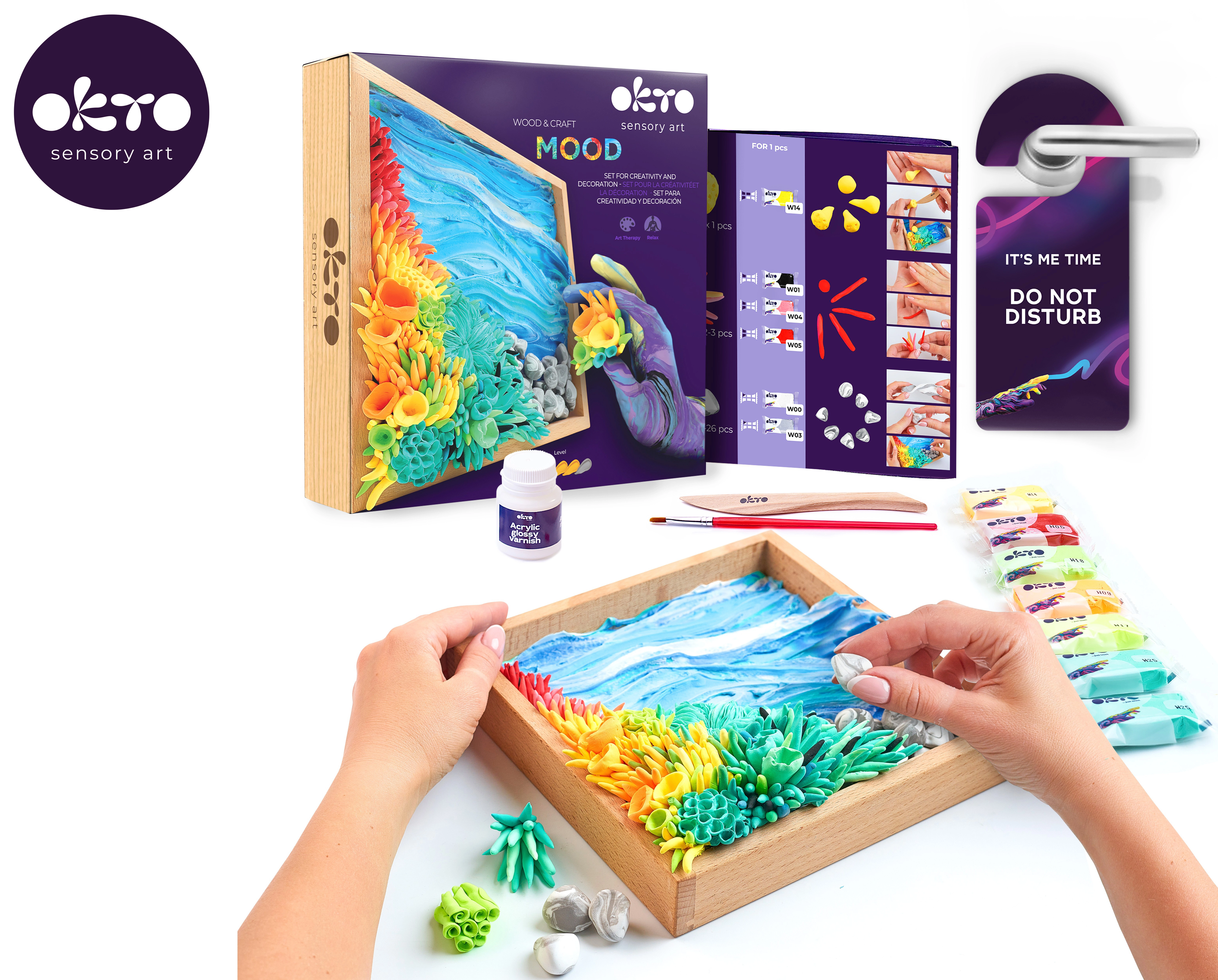 Maak je eigen kunstwerk met de creatieve set OKTO 3D Kalme oceaan. De complete set met een houten frame 21 × 21 × 5 cm, boetseermassa en gereedschap is ideaal voor iedereen die een realistisch 3D-beeld wil vormgeven volgens de instructies. Moeilijkheidsgraad 4/5 voor gevorderde makers en een gegarandeerd prachtig resultaat.