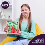 Maak je eigen magische scène met een kabouter! De creatieve set van het merk OKTO bevat alles wat je nodig hebt om een 3D-decoratie in een houten lijst van 21 × 21 cm te maken – van zelfhardende boetseerklei tot acryllak en een modelleergereedschap. Eenvoudig te maken aan de hand van de geïllustreerde handleiding, geschikt voor kinderen en beginners.