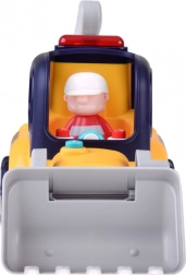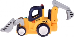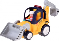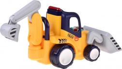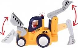 Het model biedt een automatische modus met “botsen en rijden”-functie voor zelfstandig bewegen en een afstandsbedieningsmodus met tweerichtingsbediening. De bewegende voorste schep en de scharnierende graafarm met bak activeren realistische geluiden. Inclusief een chauffeursfiguur (activeert rijden met geluid en licht) en een klein balletje voor nog meer speelmogelijkheden.