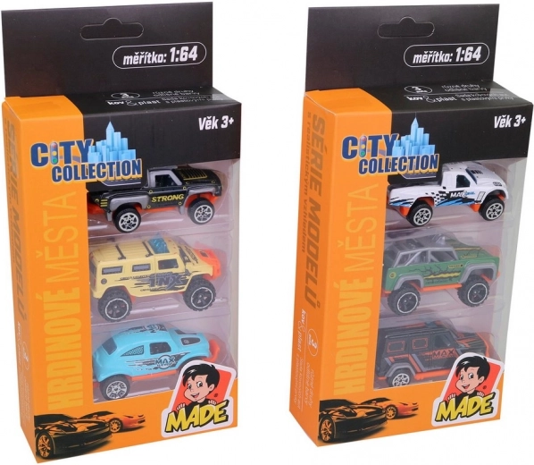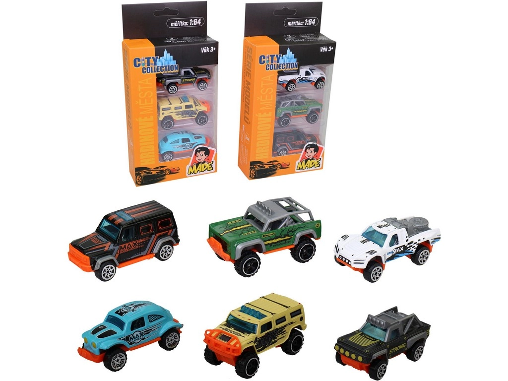 Deze set bevat drie gedetailleerde autootjes in de populaire schaal 1:64, ideaal voor races thuis en om je collectie uit te breiden. De duurzame combinatie van metaal en kunststof garandeert een lange levensduur en een geweldige look.