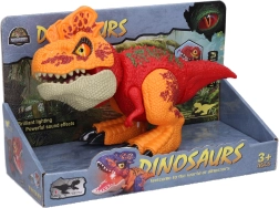Ontdek een leuke metgezel voor kleine liefhebbers van de prehistorie – een rode dinosaurus met licht- en geluidseffecten, die bij het indrukken van de knop de kop uitschuift en de bek opent. Dankzij de beweegbare ledematen, staart en kop biedt hij realistisch spel en volop plezier direct na het uitpakken – batterijen zijn inbegrepen.