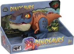 Deze gedetailleerd uitgewerkte dinosaurus in een bruine uitvoering biedt kinderen veel interactieve pret. Bij het indrukken van de knop aan de onderkant van de staart schuift de kop naar voren en gaat de bek open, vergezeld door licht- en geluidseffecten die de fantasie en het spel stimuleren.
