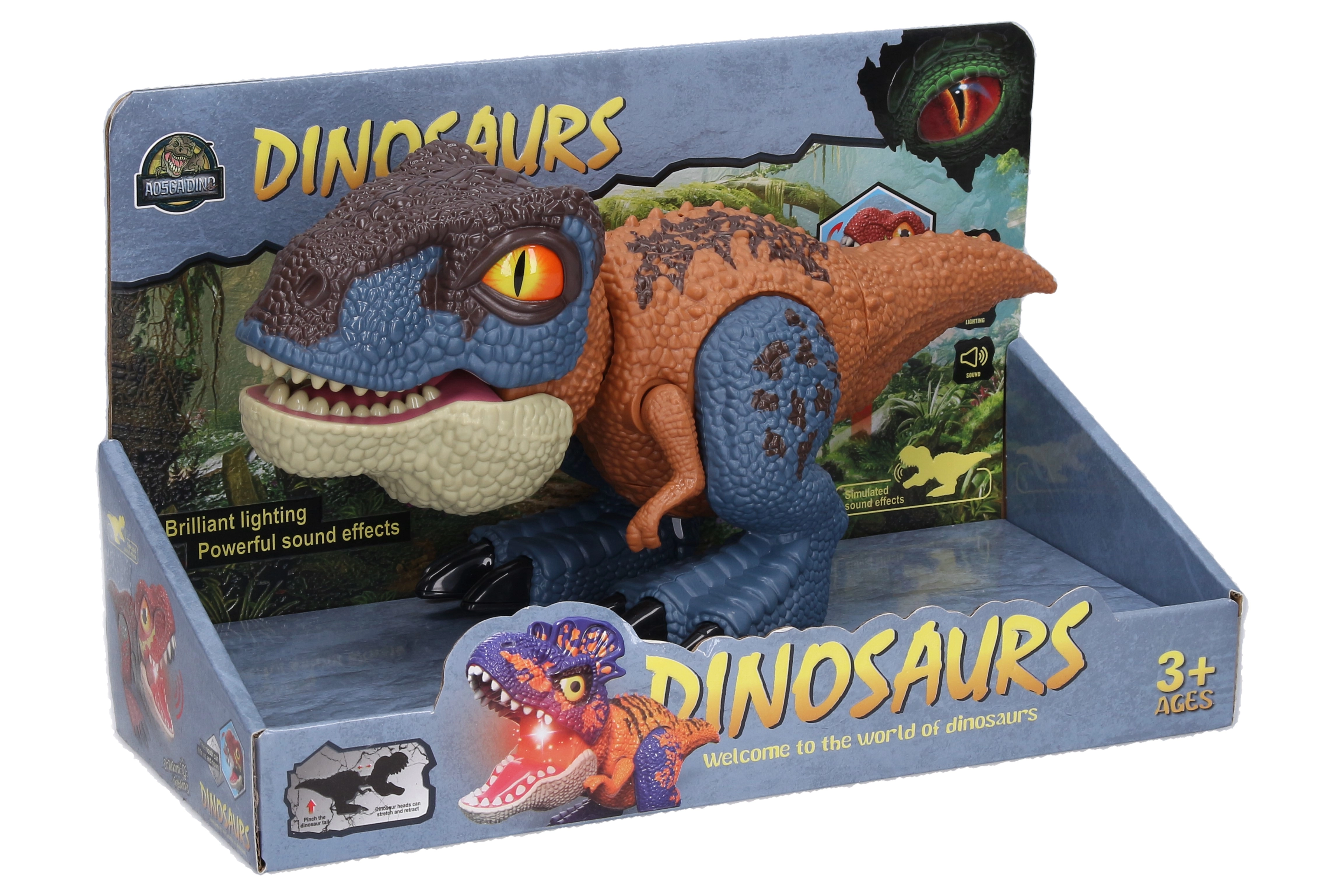 Ontdek deze leuke bruine dinosaurus met realistische licht- en geluidseffecten, die elke kleine avonturier zal verrassen. Met één druk op de knop schuift de kop naar voren en gaat de bek open met licht- en geluidseffecten. Verder heeft hij bewegende ledematen, staart en een handmatig te openen bek. Batterijen 3× AG13 zijn bij de verpakking inbegrepen.