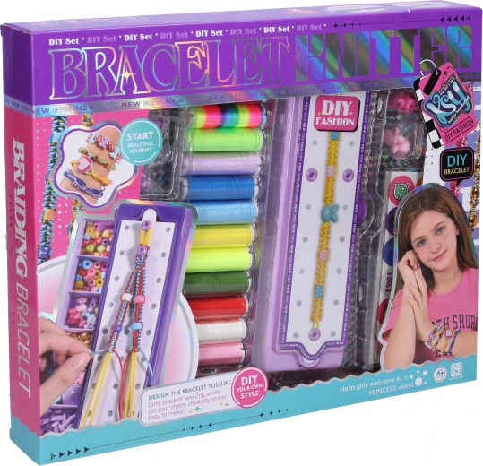 Alles is opgeborgen in een compact doosje dat niet alleen dient voor opslag, maar ook voor comfortabel vlechten. Kies uit verschillende kleuren koordjes, combineer kralen en werk het resultaat af met stickers naar eigen smaak.