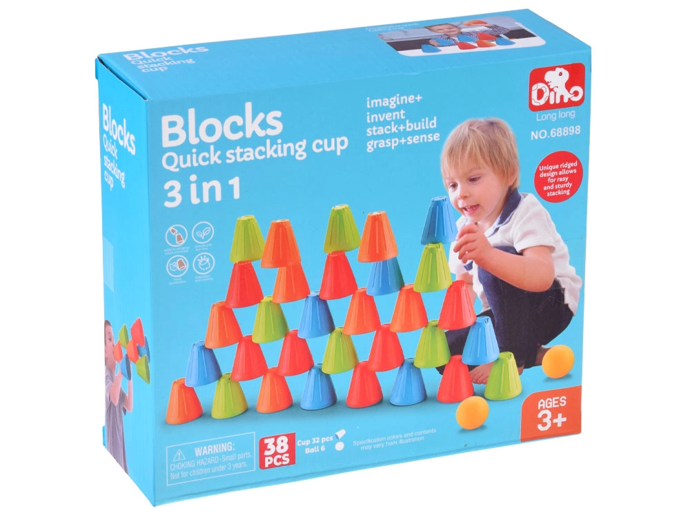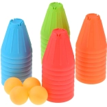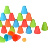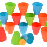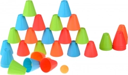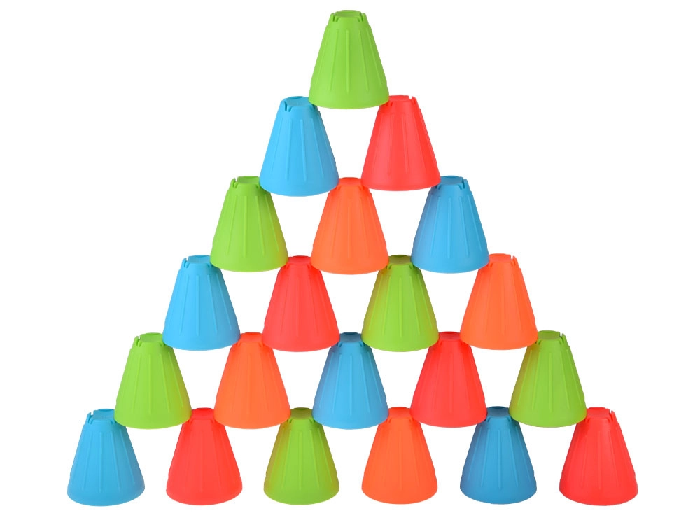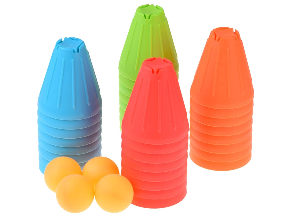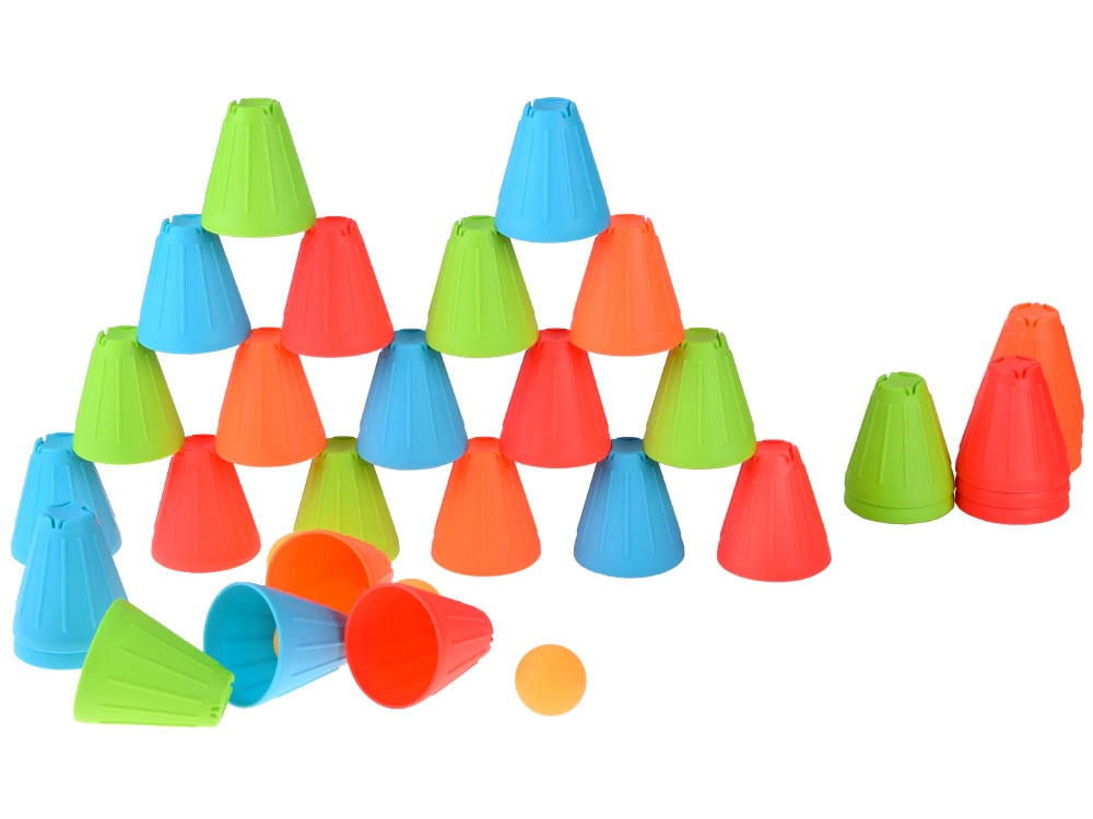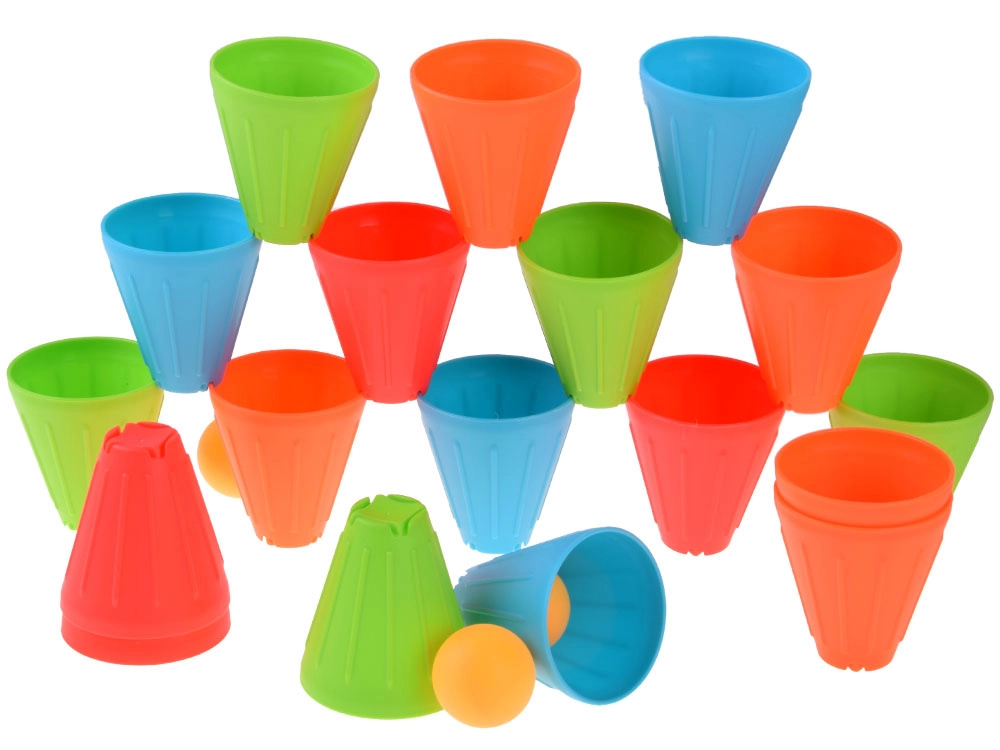 De bekers kunnen worden gebruikt als behendigheidsspel – kinderen kunnen torens en banen bouwen, bekers verplaatsen of omdraaien tegen de tijd, of met lichte balletjes gooien op gemarkeerde doelen. Spelen bevordert oog-handcoördinatie, concentratie en reflexen, en stimuleert creatief denken bij het bedenken van originele bouwwerken en opdrachten.
