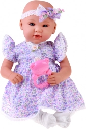 De interactieve babypop is gekleed in een charmant lila jurkje met kant en een bijpassende haarband. Het realistisch gevormde gezichtje, de lange “wimpers” en de lieve uitdrukking stimuleren empathisch spel en fantasie. Een zacht buikje en stevige armpjes/beentjes van kunststof zorgen voor comfortabel dragen en duurzaamheid bij dagelijks spel.