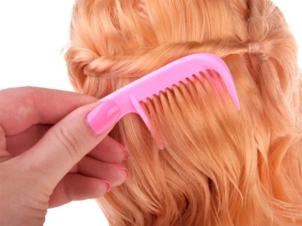 Zacht, golvend blond haar is ideaal om te kammen, te vlechten en te versieren met kleurrijke speldjes.
