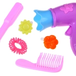 Inclusief kam, speelgoedföhn, stijltang, haarelastiek en twee speldjes – alles voor creatieve kapsels en doen-alsof salonspeelgoed.