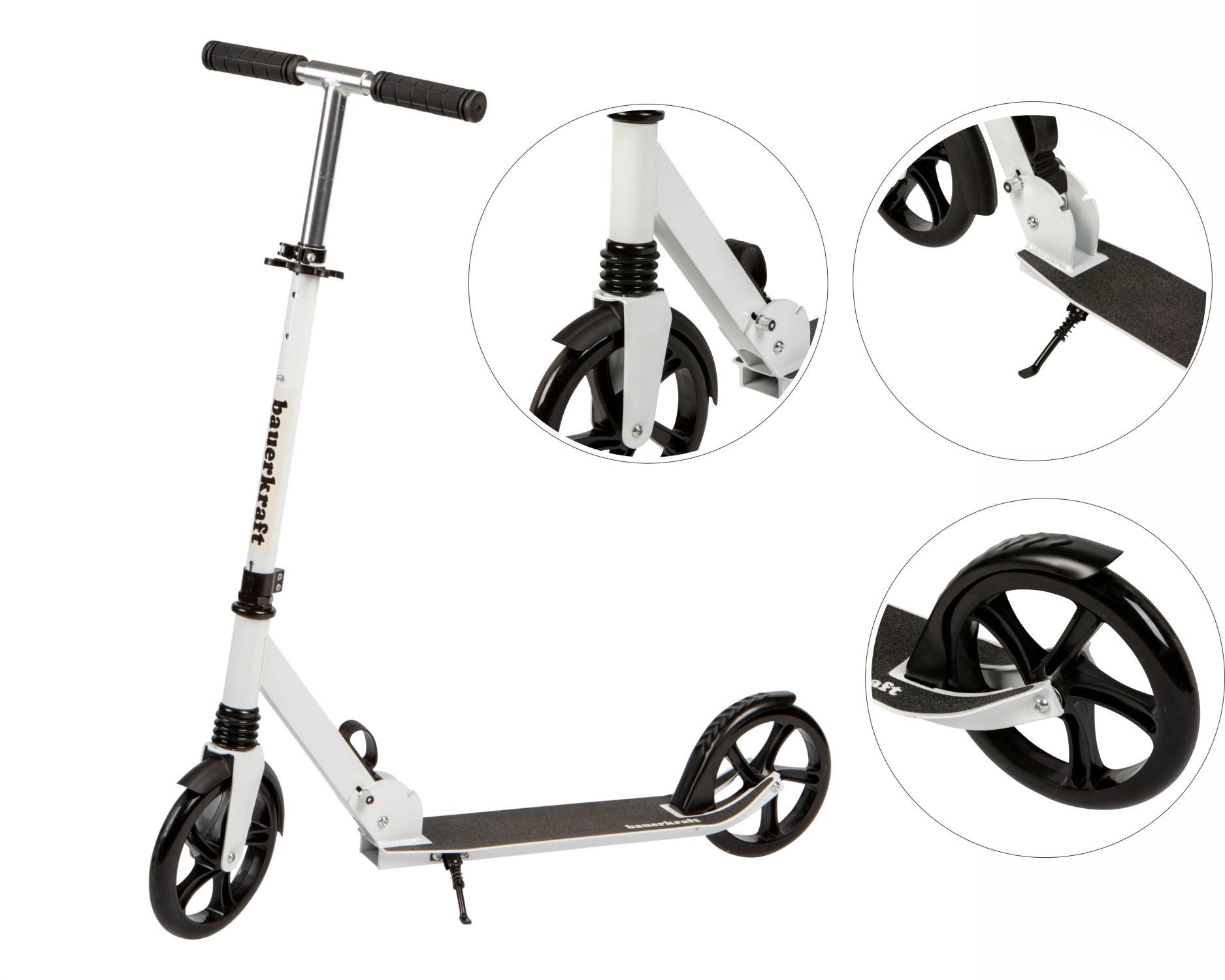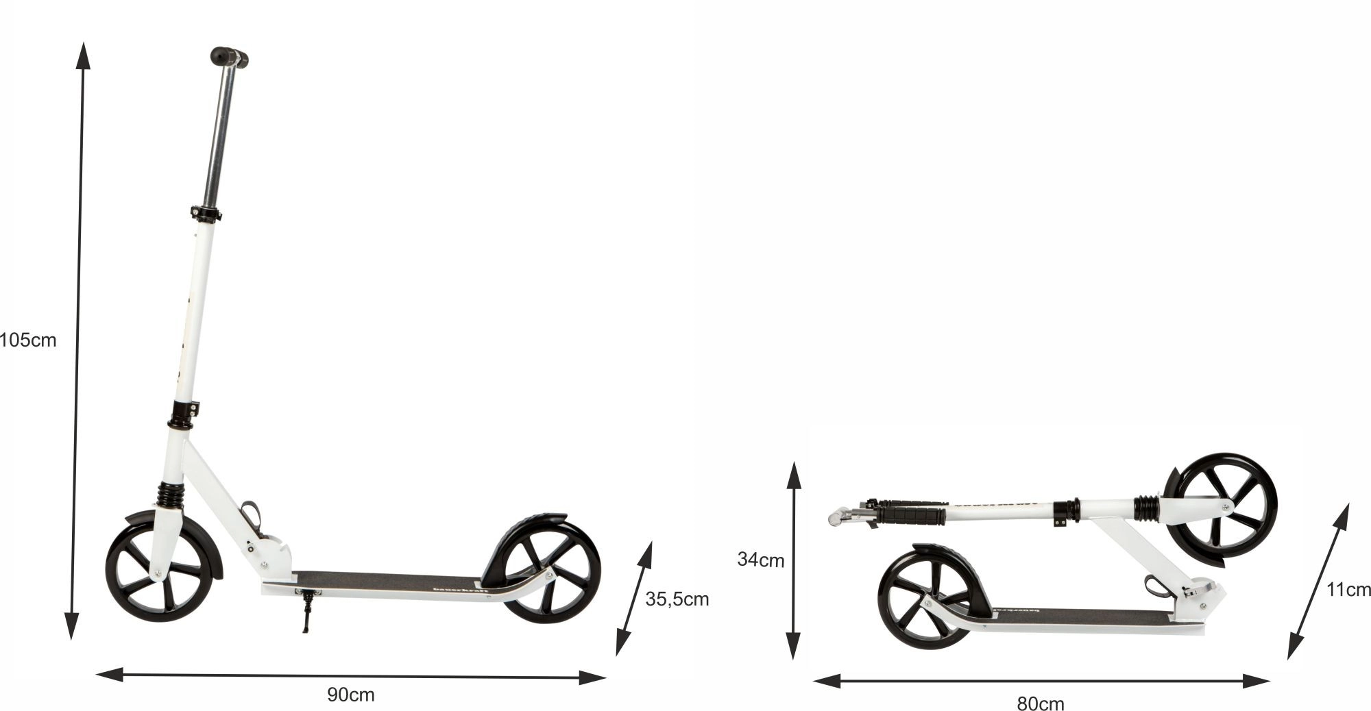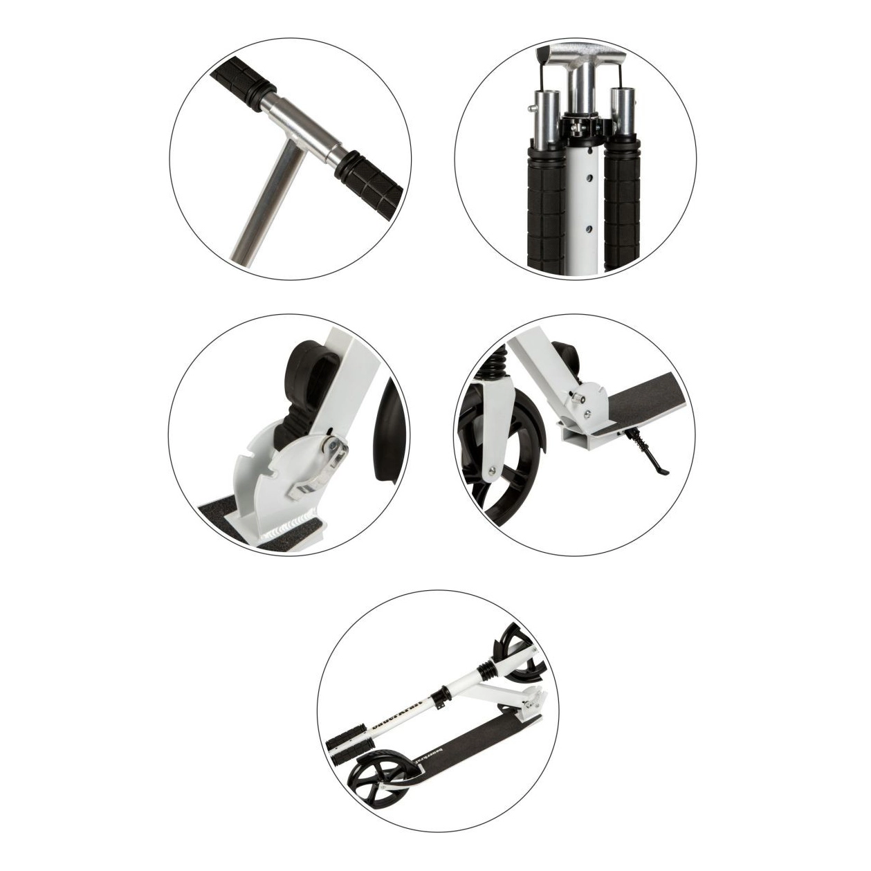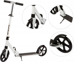 Lichte en duurzame stadsstep voor kinderen en tieners met verstelbaar stuur 95–105 cm, grote 200 mm wielen met ABEC-7 lagers, voorvering en een opvouwbaar aluminium frame. Voor veilig rijden beschikt hij over een achterrem met voetbediening, een antislip deck en ergonomische handgrepen. Maximale draagkracht 80 kg.