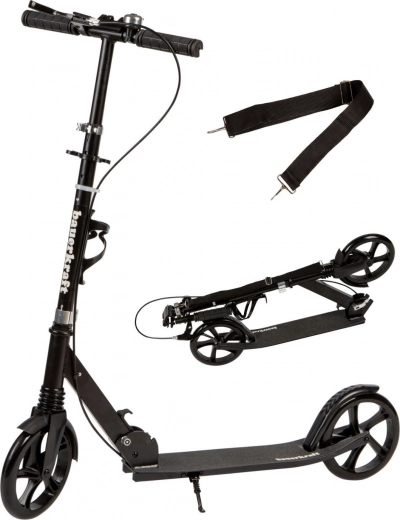 Deze stadsstep is ideaal voor de weg naar school en ontspannen ritjes door de stad. Dankzij de grote 200 mm wielen en voorvering kan hij over asfalt, trottoirs en fietspaden, dempt hij oneffenheden en verhoogt hij het comfort. De opvouwbare constructie van licht aluminium vergemakkelijkt dragen en opbergen, terwijl de voorste handrem en achterste voetrem voor zekerheid bij elke stop zorgen.