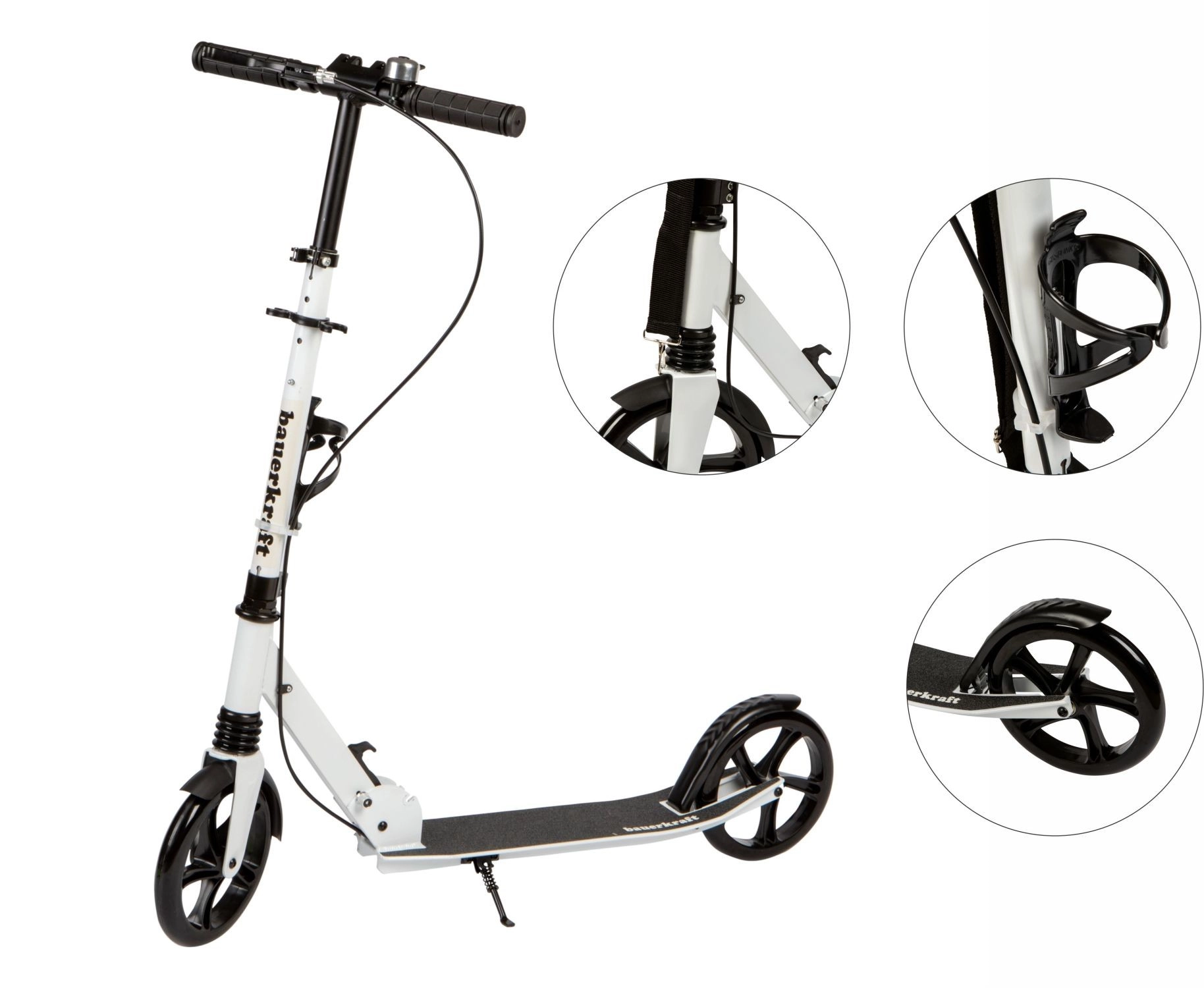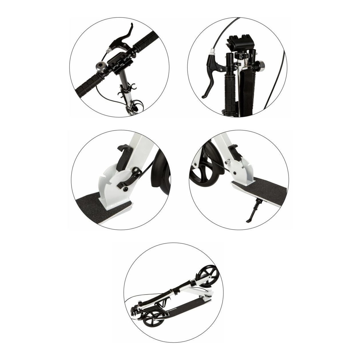 Deze stadsstep is gemaakt voor dagelijkse ritten naar school en recreatieve tochten. Dankzij de voorvering en de 200 mm wielen rijdt hij soepel over asfalt, trottoirs en fietspaden. De compacte constructie van licht aluminium bespaart ruimte thuis en in de kofferbak en maakt het makkelijk om de step overal mee naartoe te nemen.