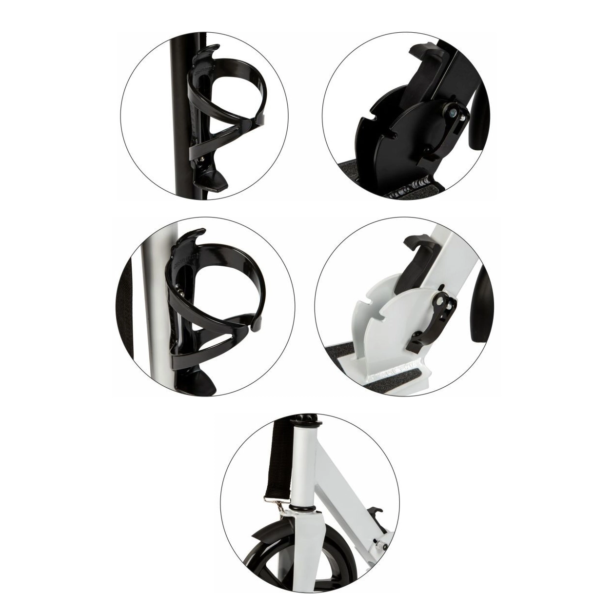 Voor maximale controle en zekerheid heeft de step een achterrem met voetbediening, een antislip voetplaat en ergonomische handvatten voor een comfortabele grip. De verstelbare stuurhoogte van 91–101 cm groeit mee met de bestuurder en helpt een correcte, ergonomische houding te behouden. Een praktische standaard en bidonhouder maken de uitrusting compleet voor dagelijks gebruik.