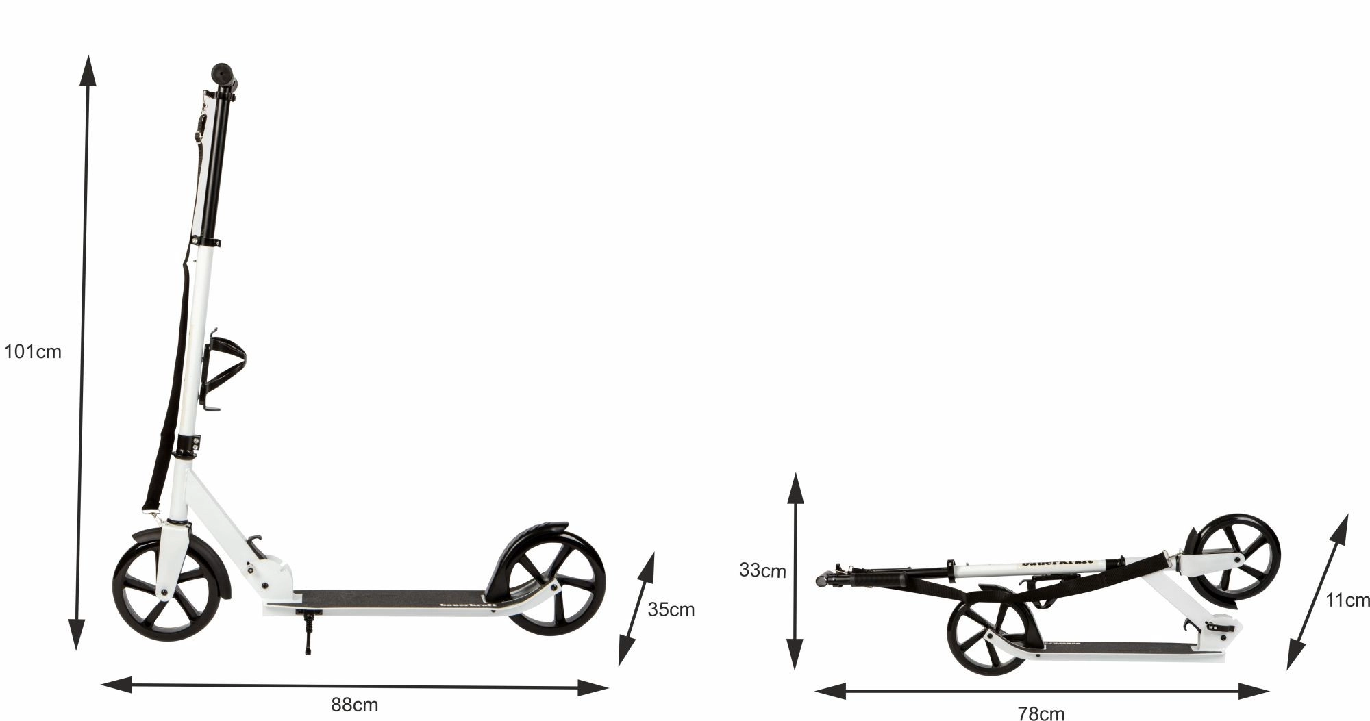 Lichte en stevige aluminium constructie die snel opvouwt voor eenvoudig dragen. Het stuur met bereik 91–101 cm past zich aan de lengte van zowel kind als tiener aan.