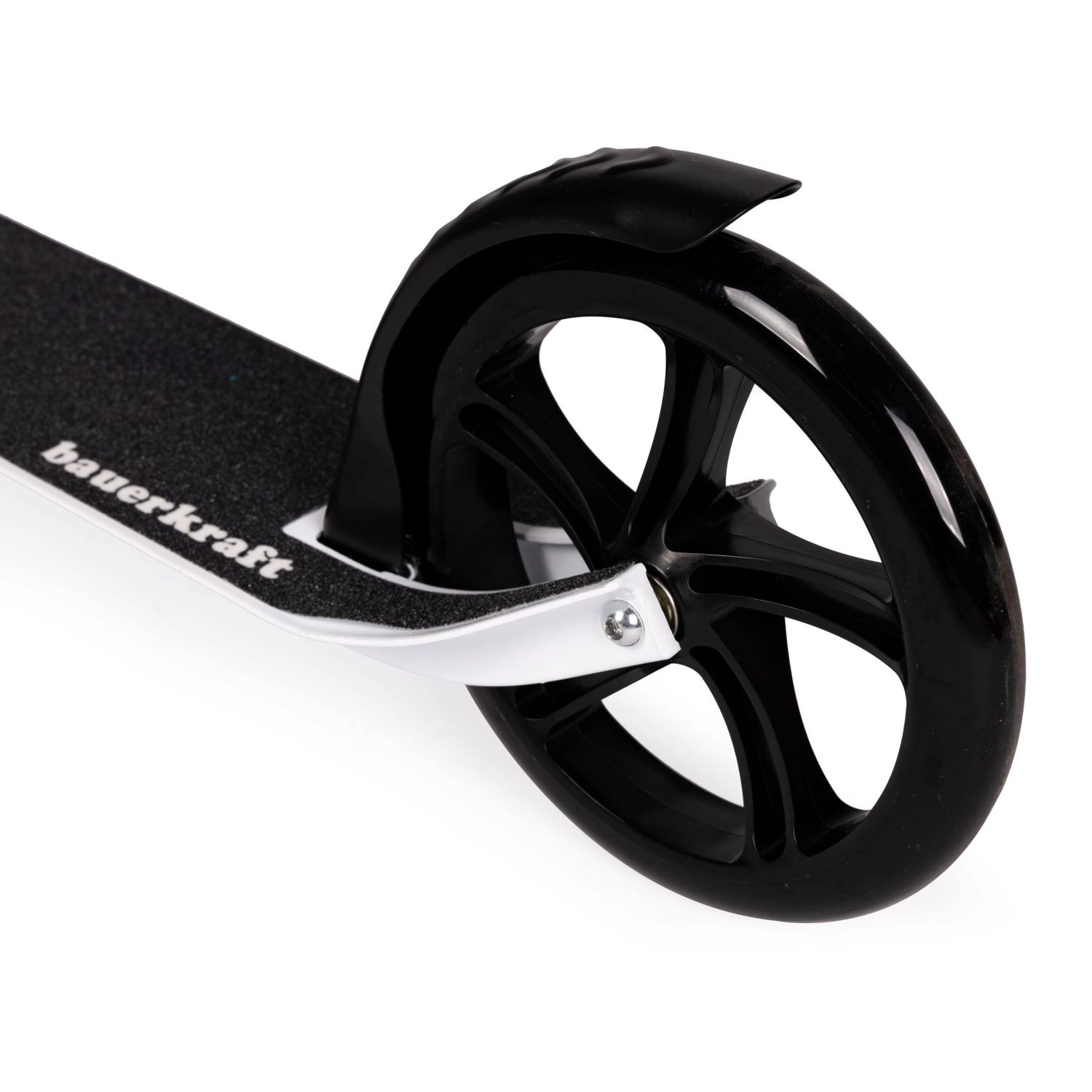 Deze opvouwbare stadsstep is ideaal voor dagelijks woon-werk of schoolverkeer en voor vrije tijd ritjes. Dankzij het aluminium frame is hij licht maar stevig, voorkvering met veer dempt oneffenheden en ABEC-7 lagers zorgen voor een soepele en vlotte rit. De achterspatbordrem verhoogt de veiligheid en beschermt kleding tegen opspattend water.