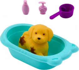 Schattige set voor kleine verzorgers: pop, hondje en badaccessoires. De grootste attractie is de interactieve hond, bij wie onder invloed van water bruine vlekken verdwijnen. Inclusief een badje met “douche” en cosmetische accessoires voor realistisch rollenspel en de ontwikkeling van fijne motoriek en verantwoordelijkheid.