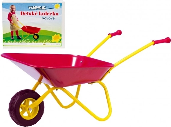 Het Yupee kinderkruiwagentje van duurzaam metaal kan dagelijkse belasting in de tuin en in de zandbak aan. Dankzij de ergonomische kunststof handgrepen ligt het goed in kinderhanden, en de stabiele constructie helpt bij het vervoeren van zand, aarde of speelgoed.