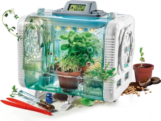 Deze slimme kas combineert spel en leren. Kinderen proberen echte botanische experimenten uit, stellen 3 verschillende groeimodi in en ontdekken stap voor stap wat planten nodig hebben om te ontkiemen en te gedijen. Geïntegreerde sensoren meten voortdurend de essentiële omstandigheden en tonen ze overzichtelijk op het LCD-scherm.