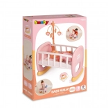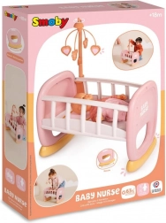 Schattige wieg voor poppen Baby Nurse van het merk Smoby combineert een wieg en een bedje in één. Dankzij de handmatig draaibare mobiel valt je baby – de pop – gemakkelijk in slaap, terwijl de stabiele constructie en het gemakkelijk afwasbare oppervlak zorgen voor comfortabel en veilig spelen. Gemaakt in Frankrijk met 63% gerecyclede materialen en geschikt voor poppen tot 42 cm.