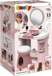 De set bevat 15 accessoires – van “lipsticks” met mechanische functie en nagellakken tot een oogschaduwpalet, kam, borstel en ring. Alle cosmetische onderdelen zijn enkel imitaties, waardoor het spel veilig en geschikt is voor kinderen. De door blaastechniek vervaardigde constructie zorgt voor hoge stijfheid en een lange levensduur. Bovendien kan de kaptafel eenvoudig worden omgebouwd tot een tafelvariant om ruimte te besparen.